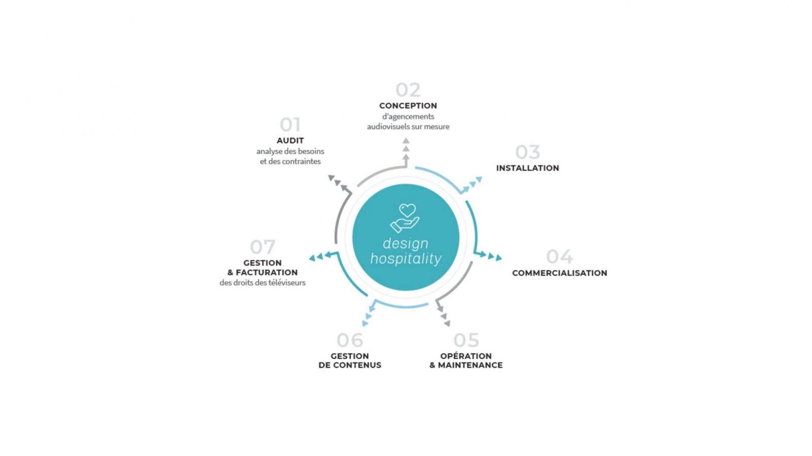 Avec le Design Hospitality, SULPICE TV prend en charge l’intégralité de votre projet audiovisuel. De l’audit technique à l’installation sur site, en passant par le conseil, la conception, le suivi de chantier et le service après-vente, nous assurons une gestion de A à Z, sans rupture ni sous-traitance non maîtrisée. Cette approche globale garantit un déploiement cohérent, efficace et adapté à chaque environnement professionnel.