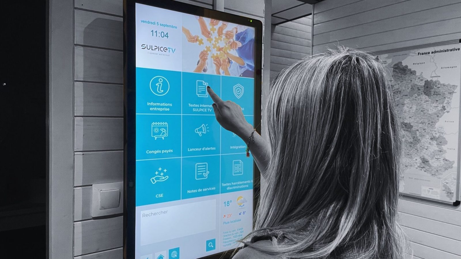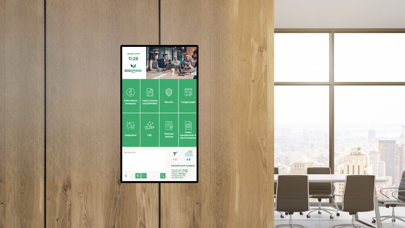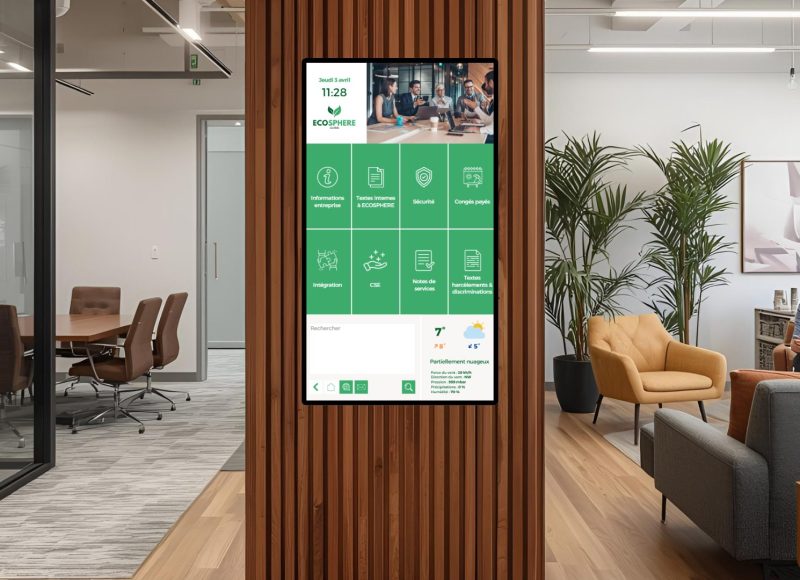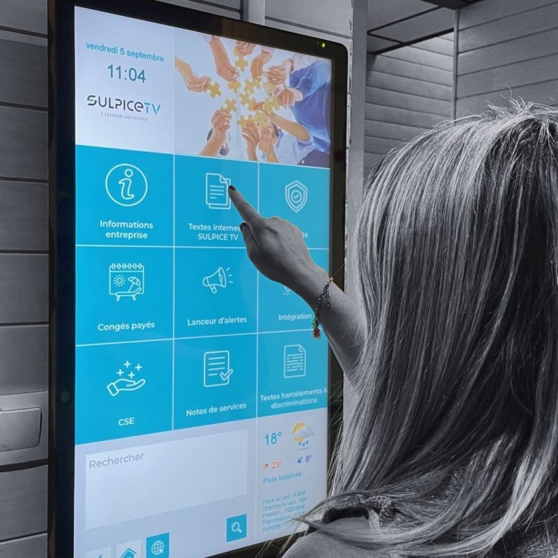 Grâce à son interface claire et ergonomique, la borne est simple à utiliser pour tous les collaborateurs. Les contenus peuvent être mis à jour instantanément, garantissant une information toujours fiable et actuelle.
