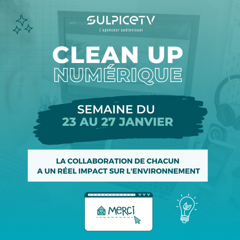 C’est pourquoi SULPICE TV organise son Clean Up Numérique, en invitant chaque collaborateur à nettoyer les boites mails, archiver et ainsi réduire notre impact sur l’environnement.