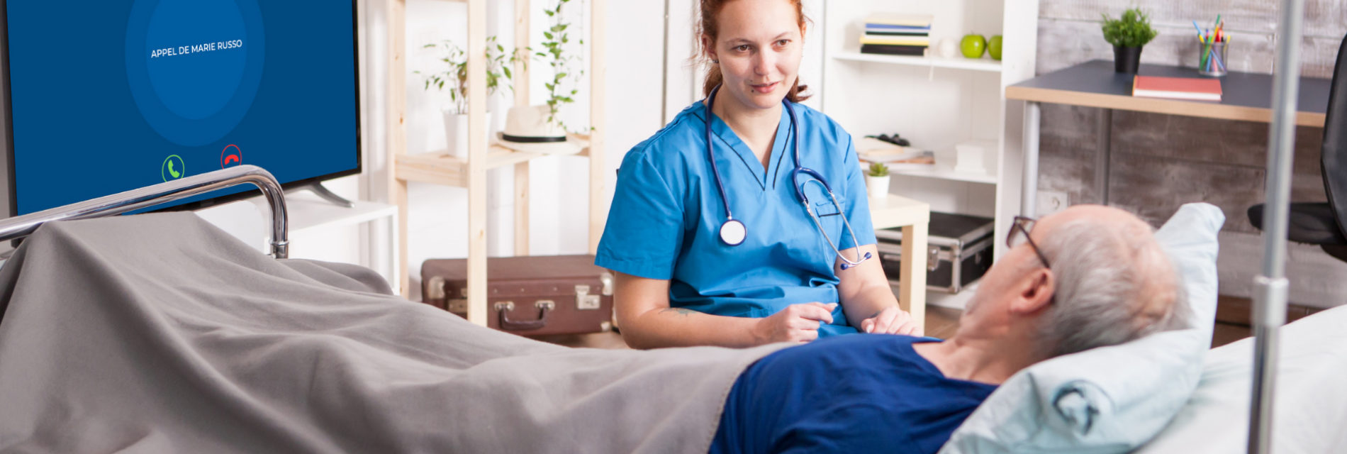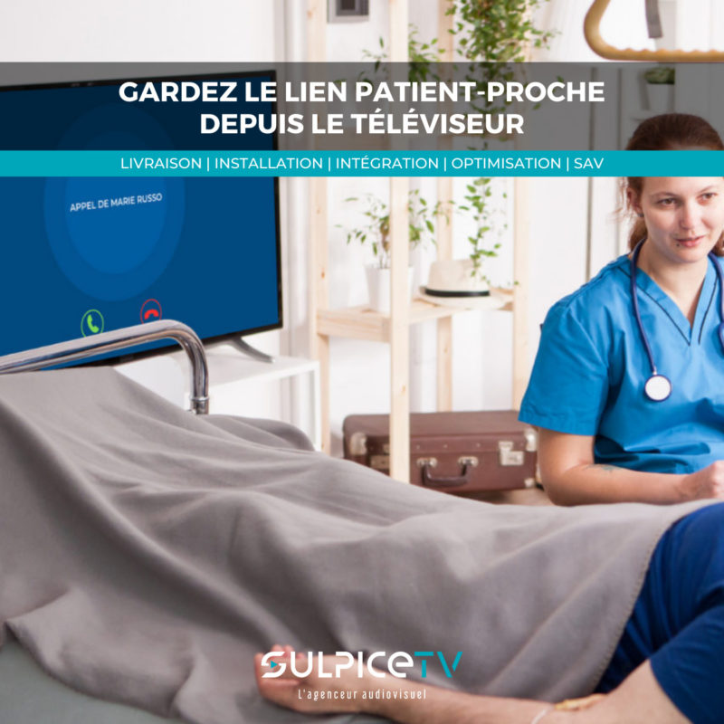 SULPICE TV a développé une solution de visioconférence innovante spécialement adaptée au domaine de la santé. Simple d’accès et d’utilisation, elle permet aux patients hospitalisés de rester connectés avec leurs proches, directement depuis leur télévision.