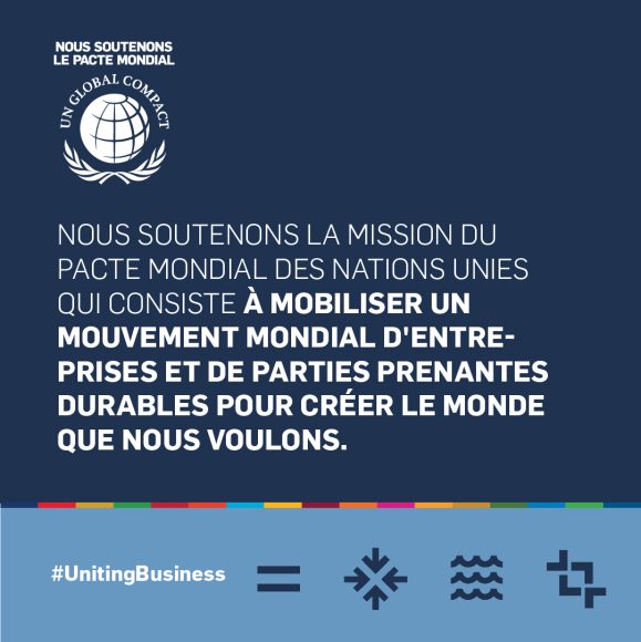 Nous sommes fiers d’adhérer au Pacte mondial des Nations Unies (United Nations Global Compact) dans notre engagement à devenir une entreprise responsable.