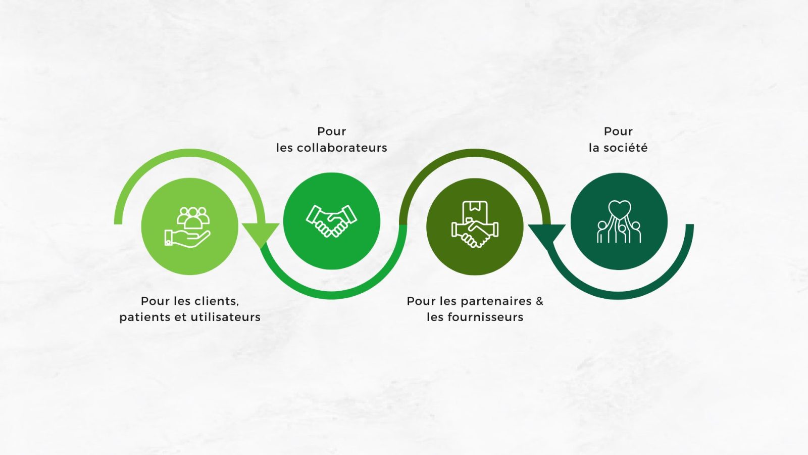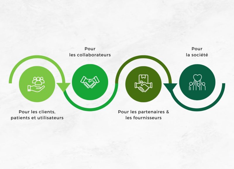 Pour les partenaires et fournisseurs : collaboration avec des partenaires partageant nos valeurs, en privilégiant des fournisseurs locaux engagés favorisant des achats responsables