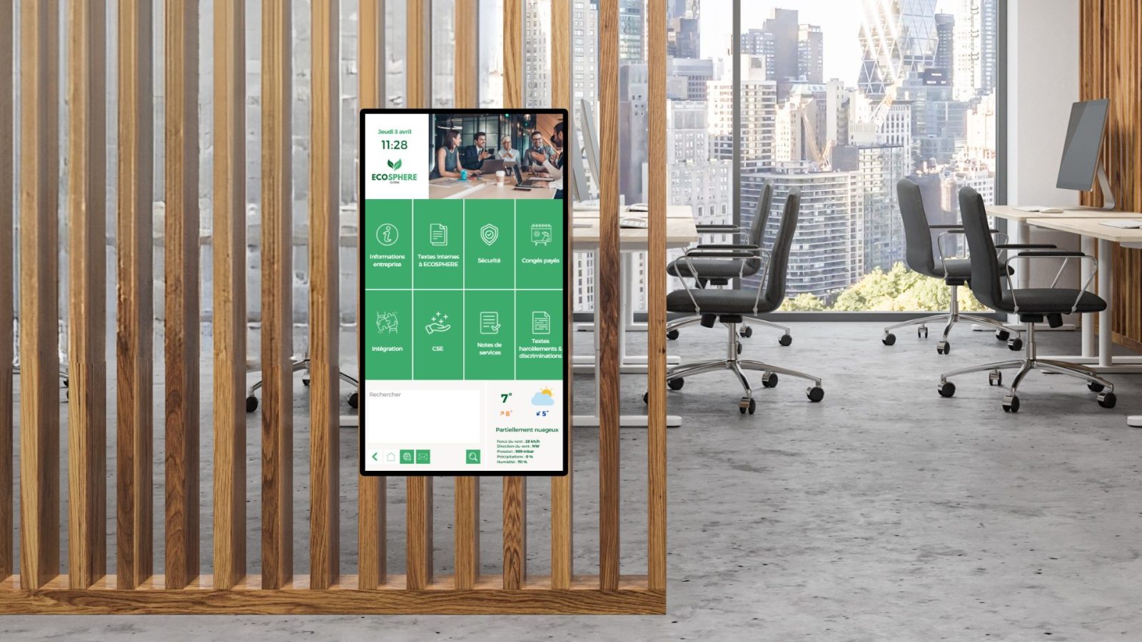 Modernisez votre communication en entreprise grâce à des moniteurs d’affichage dynamique. Diffusez en temps réel des messages adaptés à vos besoins : informations RH, actualités internes, KPI, annonces importantes ou informations pratiques.