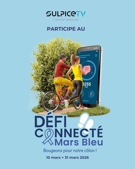 Du 10 au 31 mars, nos collaborateurs SULPICE TV se mobilisent pour le défi sportif connecté Mars Bleu, organisé par Dépistage des cancers Auvergne Rhône Alpes – CRCDC AuRA, via l’application Kiplin avec le code CRCDCMARSBLEU.