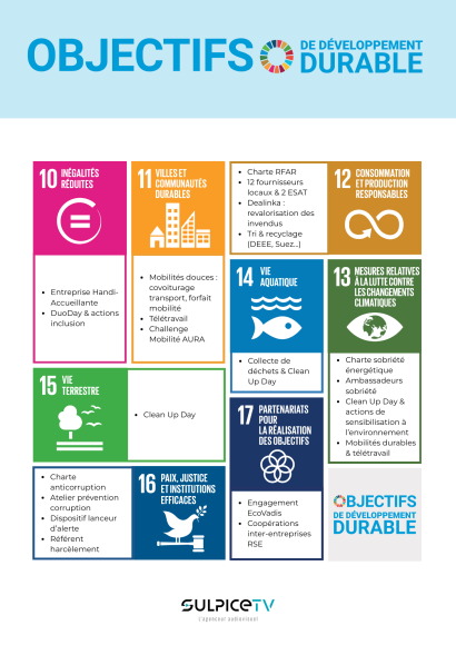 ChezSULPICE TV, nous faisons évoluer notre démarche RSE en nous alignant sur les 17 Objectifs de Développement Durable (ODD) de l’ONU.