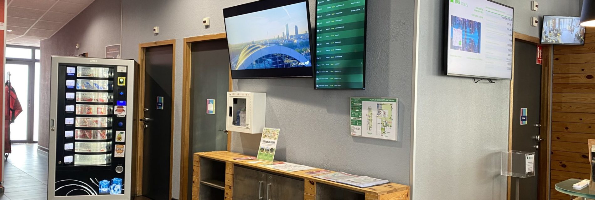 Notre réponse : Un accompagnement professionnel et sur-mesure grâce à un nouveau parc TV en chambre, des écrans d’affichage dynamique dans les espaces communs et ascenseurs puis un écran de visioconférence dans la salle petit-déjeuner Ibis Styles.